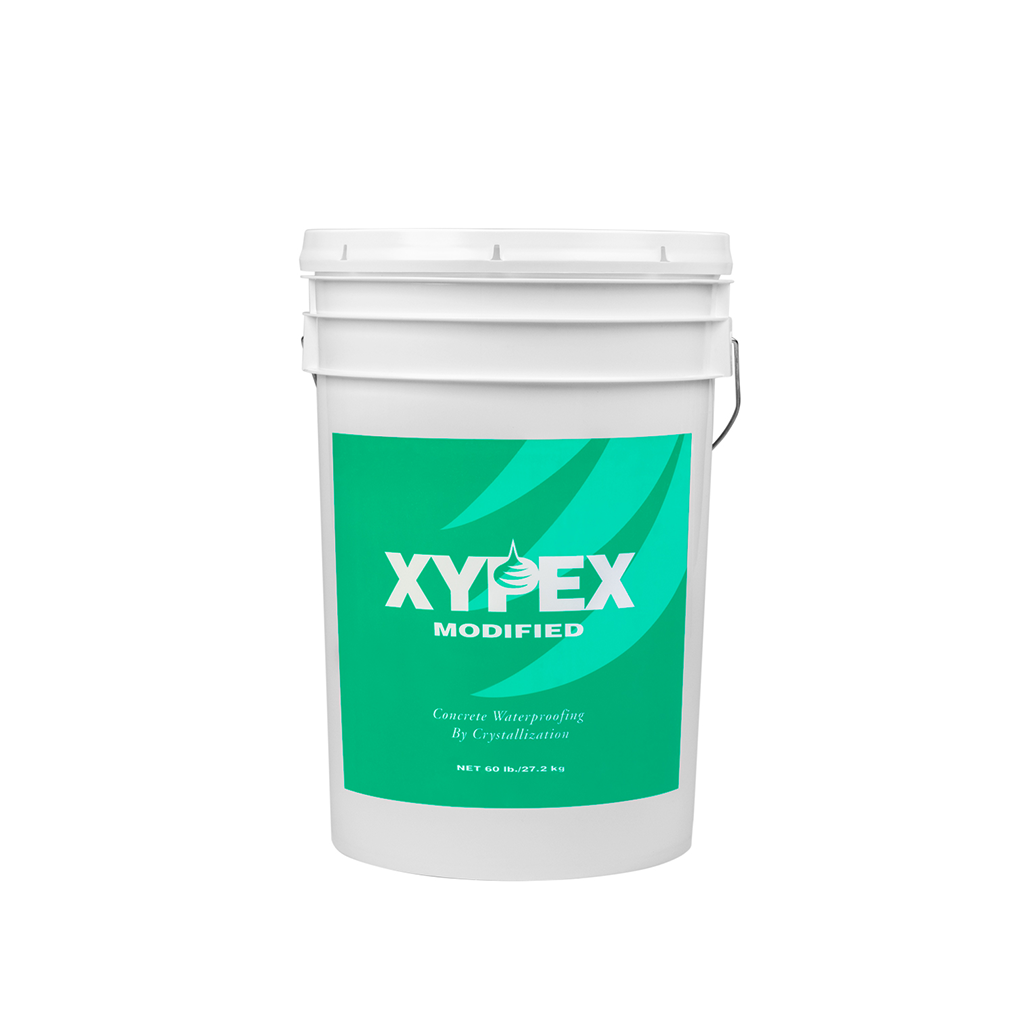 Xypex es un tratamiento químico único para la impermeabilización, protección y reparación del concreto. Xypex Modificado se puede aplicar como segunda mano para reforzar a Xypex Concentrado, o puede utilizarse únicamente para impermeabilizar el exterior de muros de cimentación. Aplicado como una segunda mano, Xypex Modificado refuerza químicamente al Xypex Concentrado, el cual requiere la aplicación de dos capas para producir un acabado más resistente/sólido. En el caso de muros de cimentación, una capa de Xypex Modificado puede usarse como alternativa a la aplicación de capas bituminosas. Xypex previene la penetración de agua y otros líquidos en cualquier dirección, debido a la formación de cristales no solubles a partir de una reacción catalítica, sellando los capilares y poros del concreto y materiales de bases cementosas.